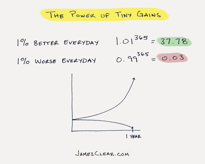 Just imagine if every day you got better by 1% or even 0.1%, think about what that would look like in 1 year, 2 years, or 10 years ahead.